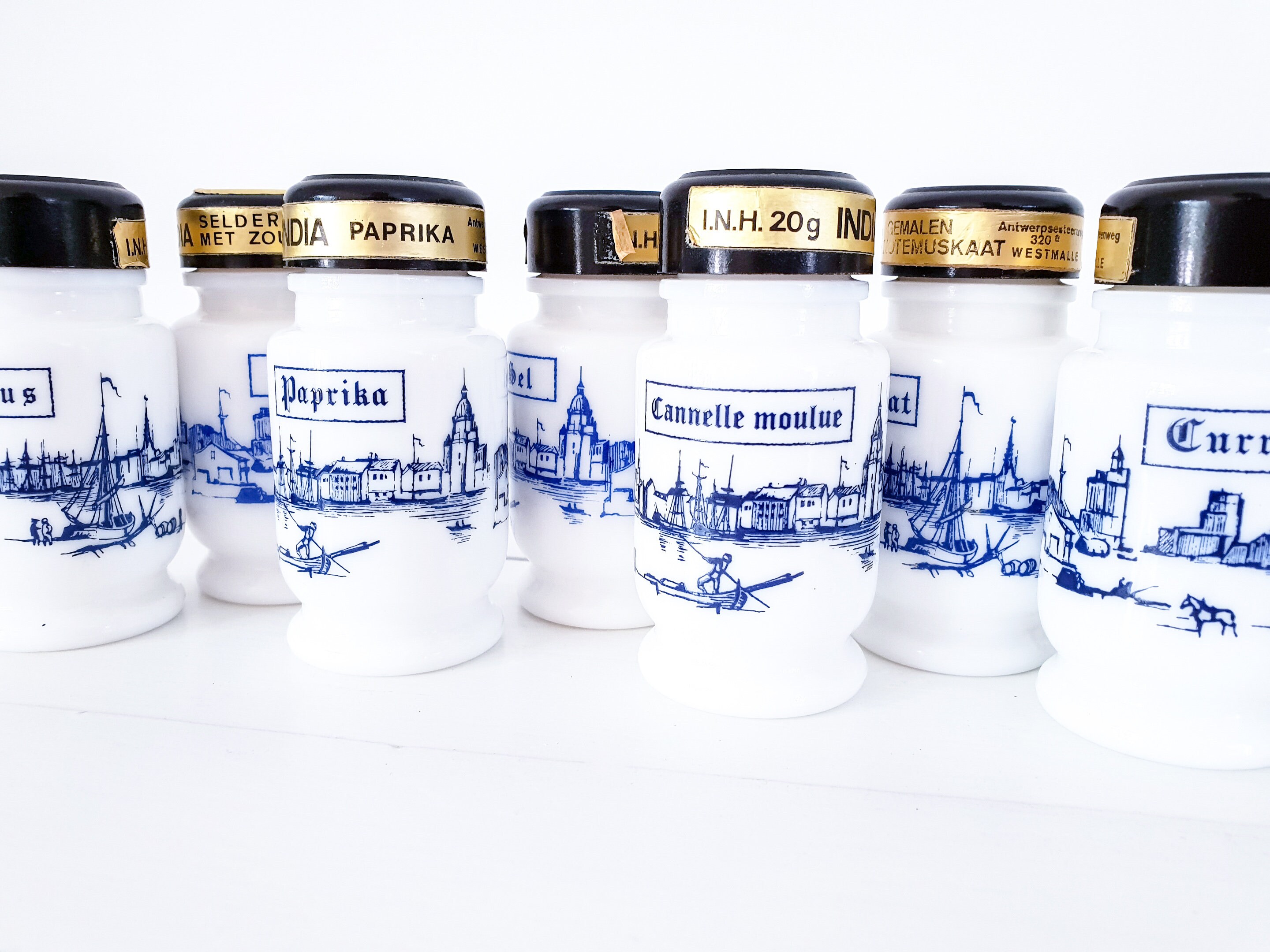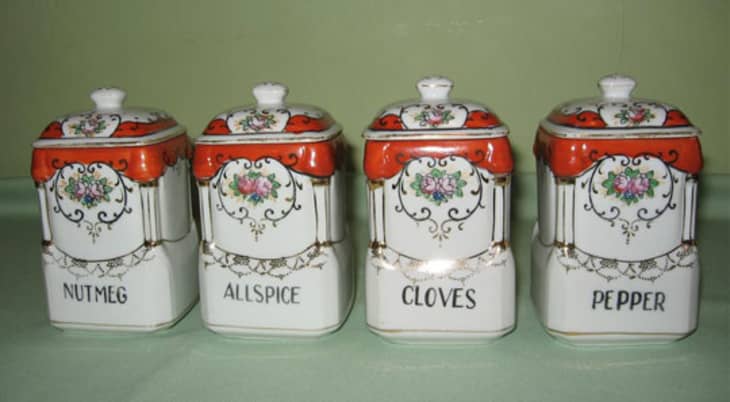 Some of our favorites are the vintage griffiths milk glass spice jars you can find with or without their labels.